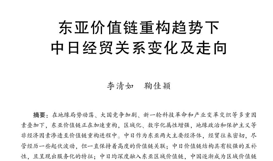 李清如,鞠佳颖 | 东亚价值链重构趋...